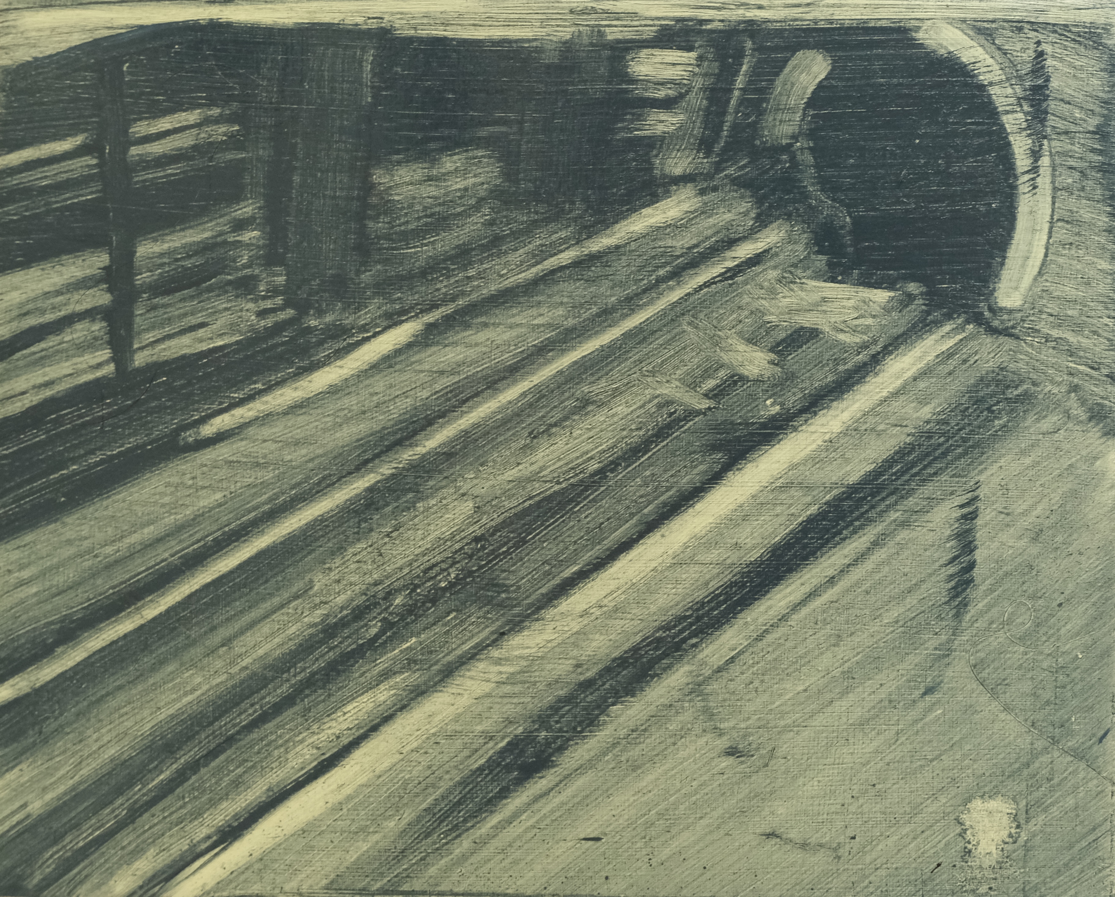 Subway CCTV, Oil on Plywood, 30.5 x 22.6 cm
