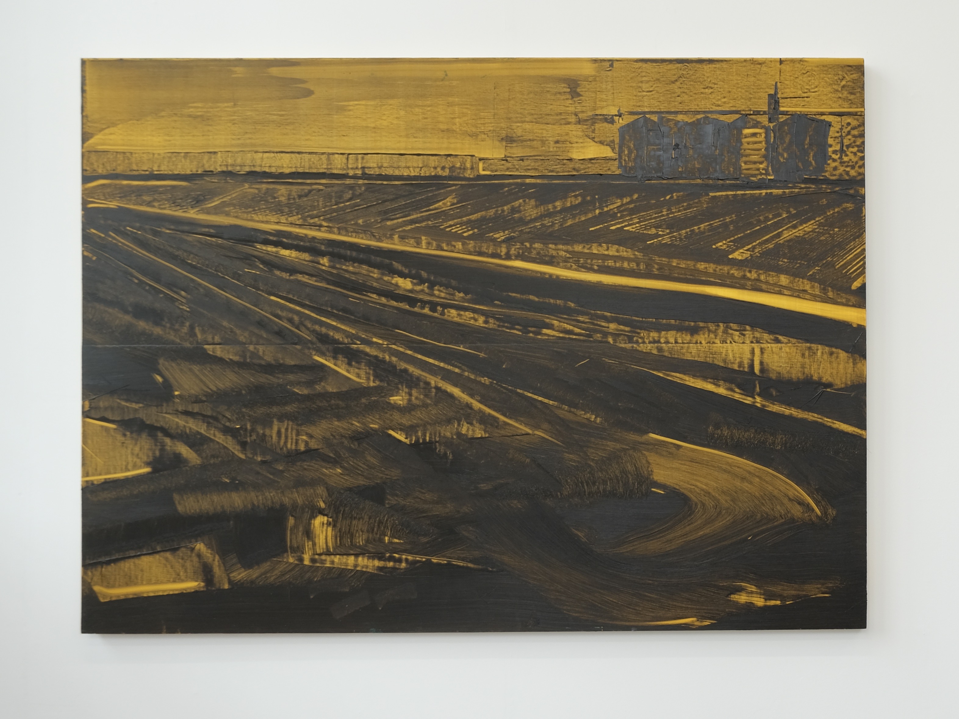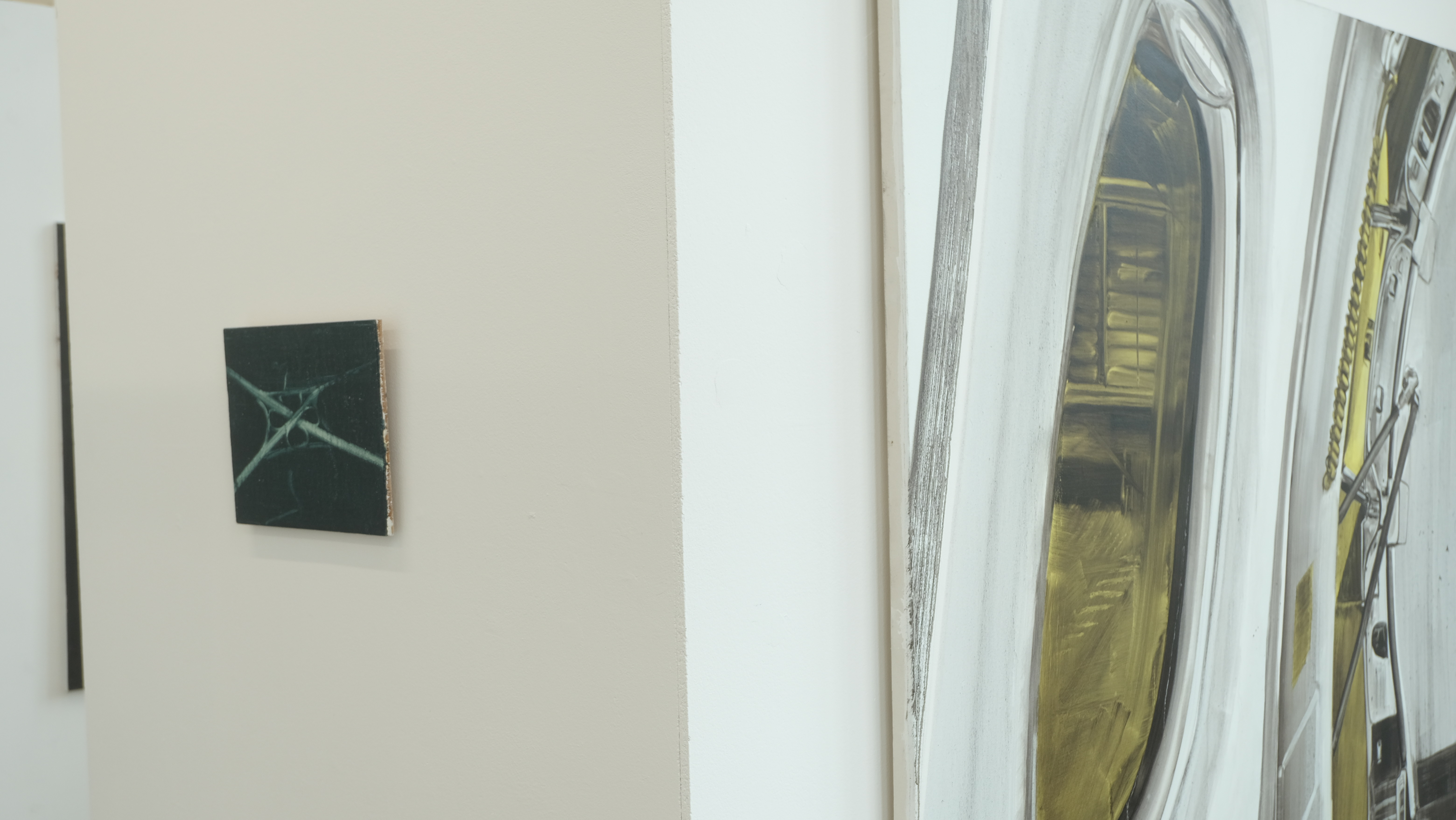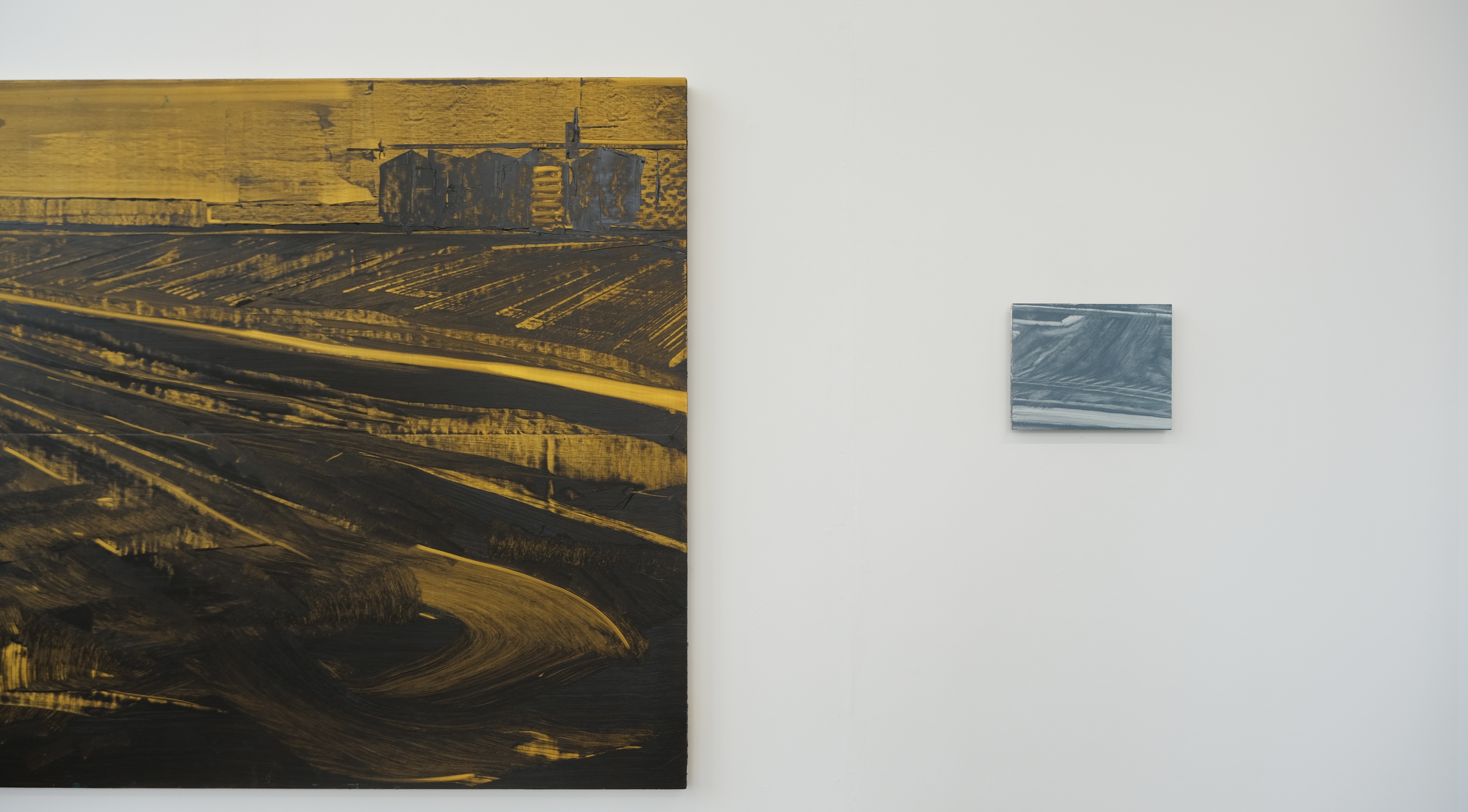 My studio practice is responding to the fastness of the photographic sources. I prefer to use a trial-and-error-based approach than a slow build-up of my work. I am responding to the saturation and prolificacy of images in contemporary society. I cover the surface in thick oil paint and wipe away using solvents and various self-made tools to uncover the bright ground colour. In this manner, the paintings themselves become ‘almost abstractions’ of the images I take, which is inspired by the paintings of Carol Rhodes. Through editing, projecting, painting, wiping away, and repainting, the image changes and holds a trace of what was originally seen.