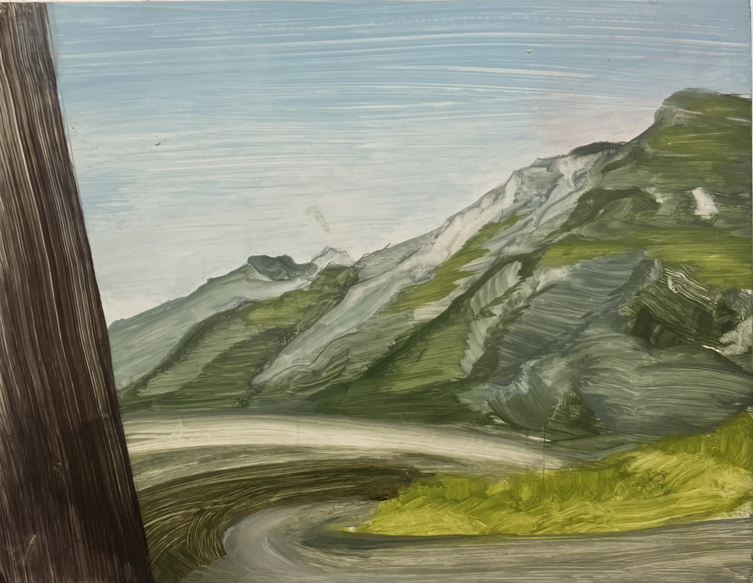 Turzi Gorge, Julier Pass I, Spedition, Abfahrt, Oil on Plywood, 30.5 x 22.6 cm